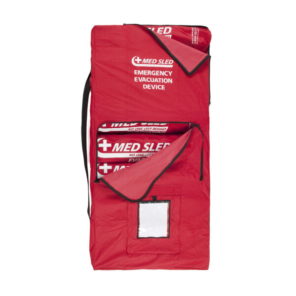 Med Sled® Storage Device that can store sleds out of the way and in one known location. All storage bag cases come with hook loops for installation along walls. Made of a durable canvas to protect the sled from contamination and has a protective pocket for any evacuation plans.